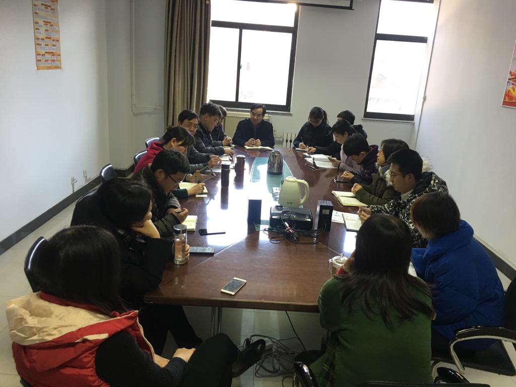 研究生院全体教师于2017年12月18日在11楼416会议室集中学习十九大精神,本次会议由研究生党委书记何华主持,研究生院院长胡双启为全体人员讲党课。