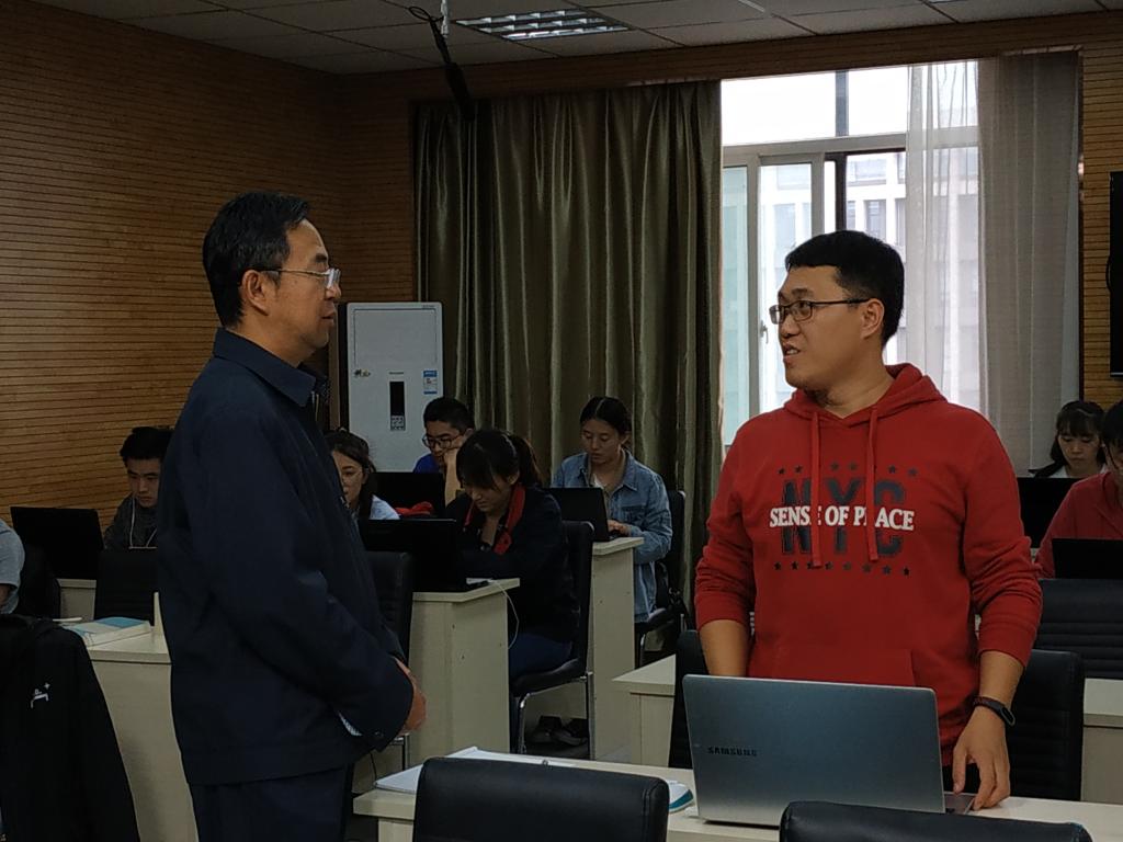 2018年9月17日下午2:30,研究生党委书记何华、党委副书记兼副院长崔亚、教育管理科么兰、殷勍和任伟吉老师在理学院科研副院长徐鹏、科研科长张正国老师的陪同下到9号教学楼慰问色花堂