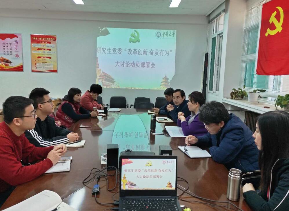 3月1日,为深入贯彻落实省委、学校党委部署精神,研究生党委召开“改革创新 奋发有为”大讨论动员部署会,对我院开展好大讨论进行全面动员部署,动员全院上下进一步解放思想、凝心聚力,改革创新、奋发有为。研究生党委书记何华主持会议。