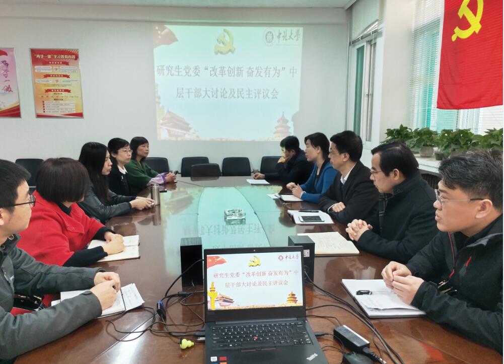 2019年3月22日,根据校党委的工作安排,研究生党委开展了“改革创新奋发有为”中层干部大讨论及民主评议会,研究生院全体教师参加会议,会议由研究生党委书记何华主持。