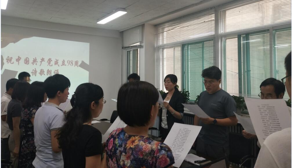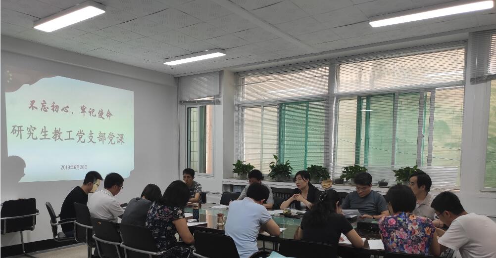 2019年6月26日,研究生党委教工党支部开展了“不忘初心、牢记使命”党课和庆祝中国共产党成立98周年诗歌朗诵活动,研究生院全体教师党员参加,会议由支部书记崔亚主持。