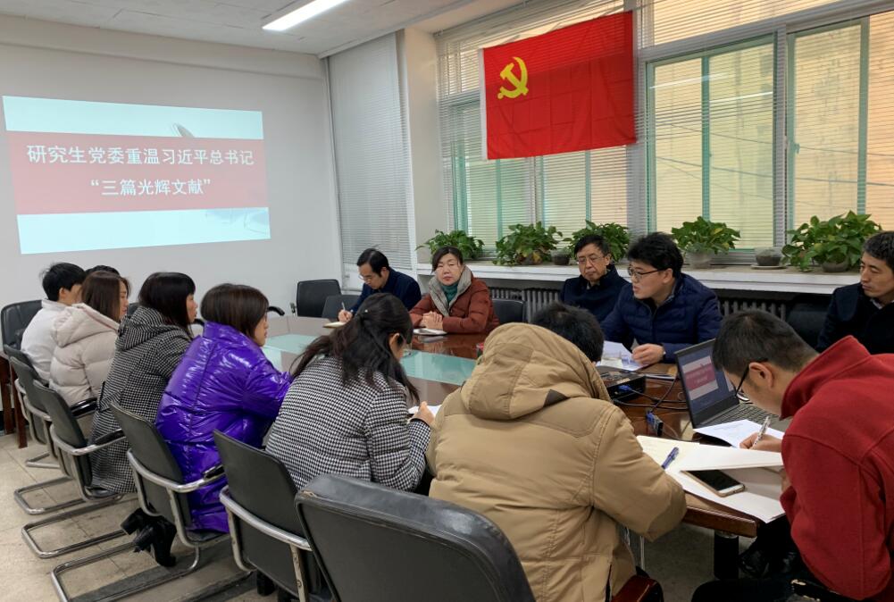 12月27日上午,根据校党委的工作安排,研究生党委开展重温习近平总书记“三篇光辉文献”学习会,研究生院领导班子成员和全体党员参加,会议由研究生党委副书记、研究生党委教工党支部书记崔亚主持。
